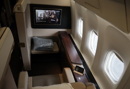 - First Class: Fully flat seats available on select Boeing 777 aircraft